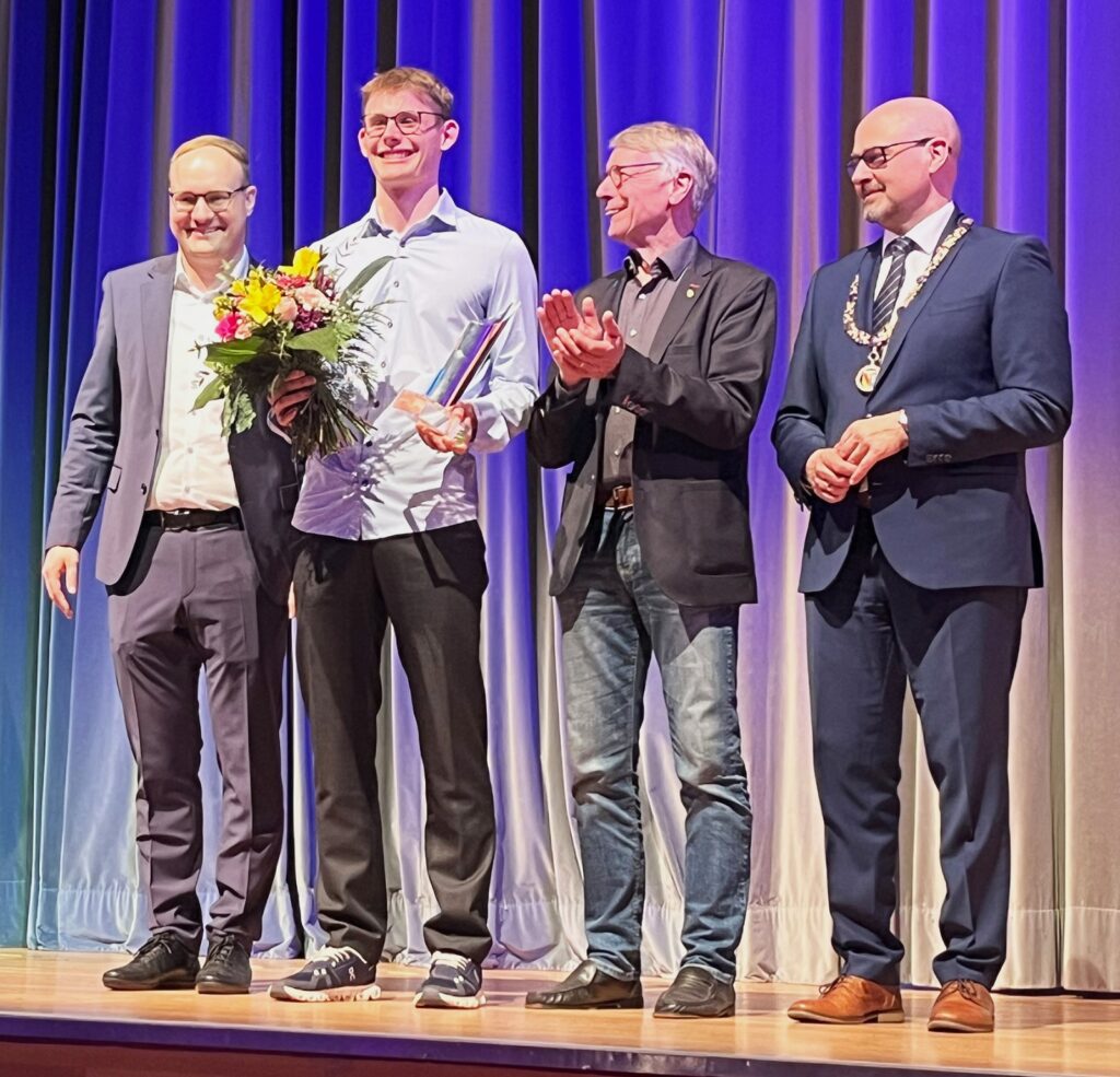 Aufgrund seiner vielen guten Leistungen auf nationaler und internationaler Ebene hat „400 m-Spezialist“ Maximilian Köhler (Junioren U23) im Rahmen der Sportlerehrung 2025 von OB Johannes Arnold den Ettlinger Lauerturm und somit die höchste Sportauszeichnung bei den Erwachsenen erhalten.